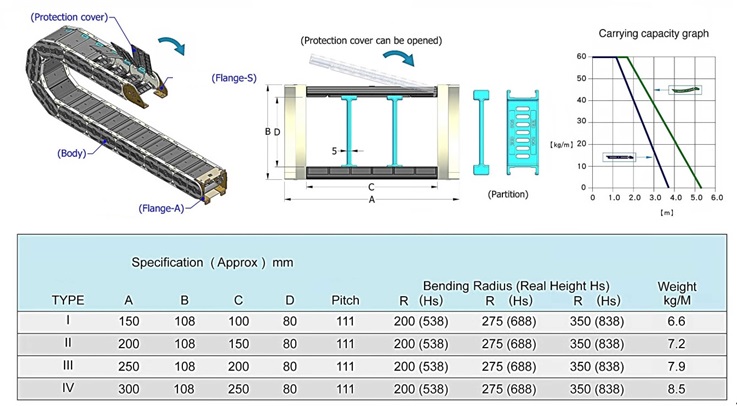 - Xích nhựa Sinz chuyên dùng để dẫn dây điện, dẫn tín hiệu, dây điều khiển, ống hơi, dẫn thủy lực cho các ứng dung CNC, hệ thống cầu trục, máy hàn, cắt….